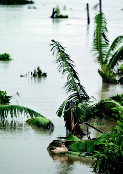 莫拉克颱風襲台,豐沛的雨量造成南部各縣市淹水災情嚴重,連鴨子也找不到回家的路。