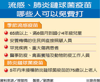 | 季節流感、肺炎鏈球菌 免費疫苗後天開打 |