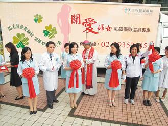 天主教耕莘醫院總院長鄧世雄(左二)昨天宣布,新店市第1輛「數位型乳房攝影巡迴車」昨天正式在耕莘成立,預估每年可服務文山地區約5500名婦女。