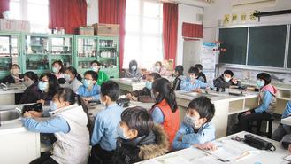 避免在校內交叉感染流行性感冒,學生都戴著口罩上課。