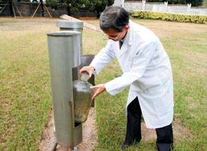 原能會位於高雄的輻射偵測中心,研究人員蒐集雨水,用來分析輻射數據。 記者劉學聖/攝影
