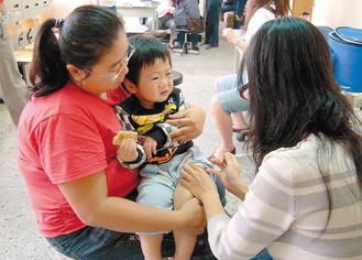血清型19A引發的重症個案,近年越來越多,家長應提高警覺。圖為父母帶幼童施打肺炎疫苗。