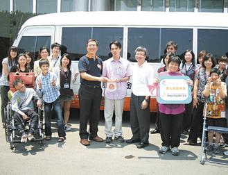 昨天交車儀式上,伊甸基金會也帶了幾名身心障礙人士一起來體驗新復康巴士,病患們看到新車都顯得非常開心。